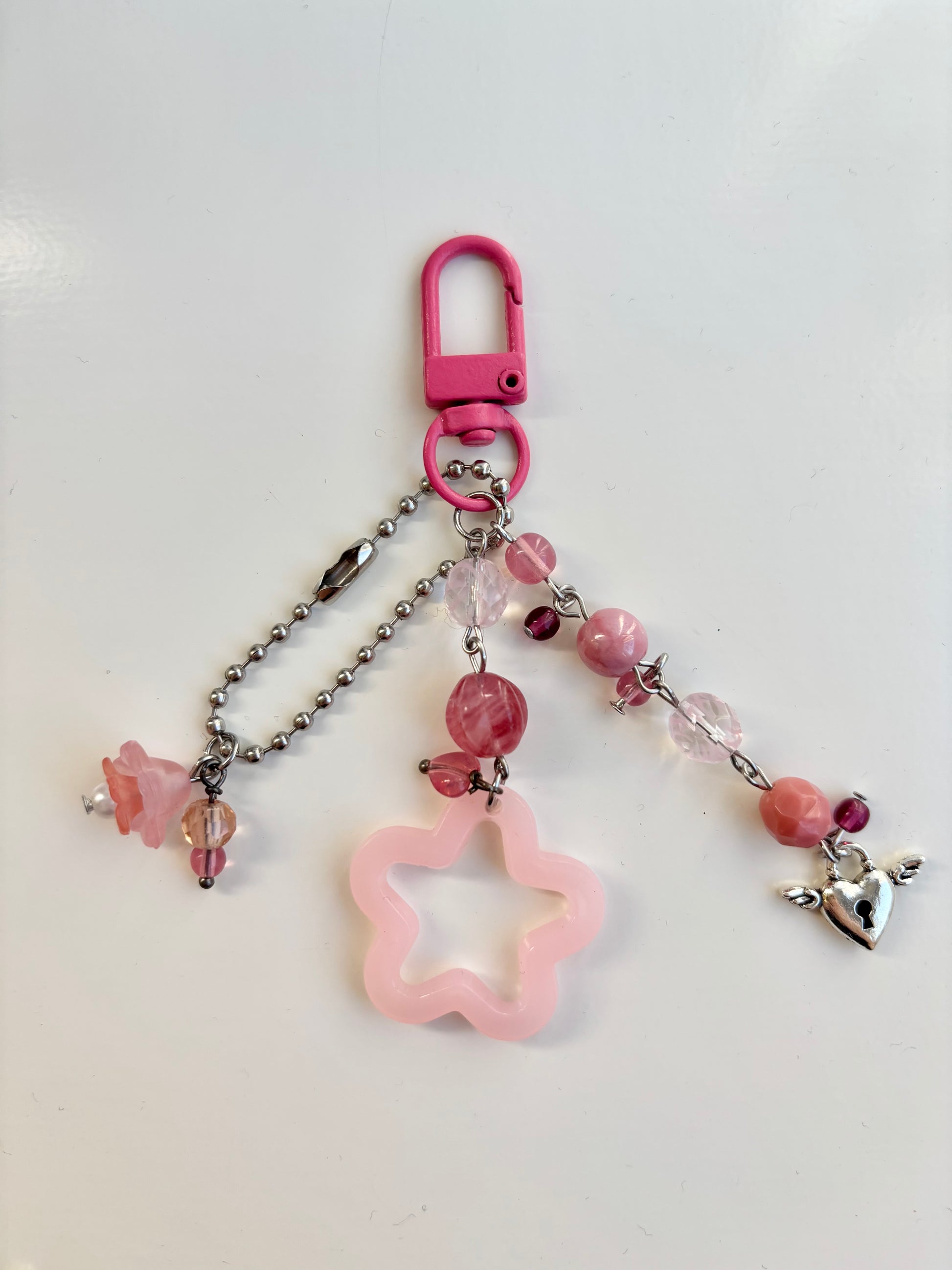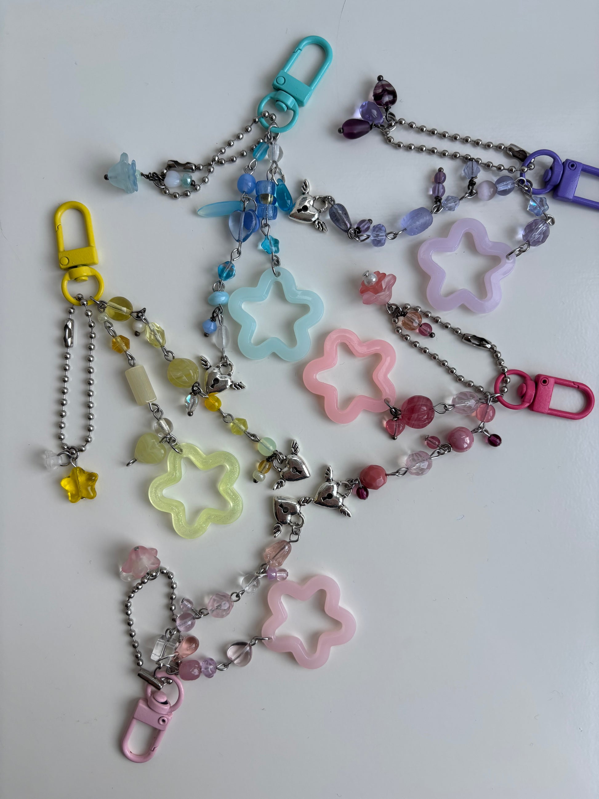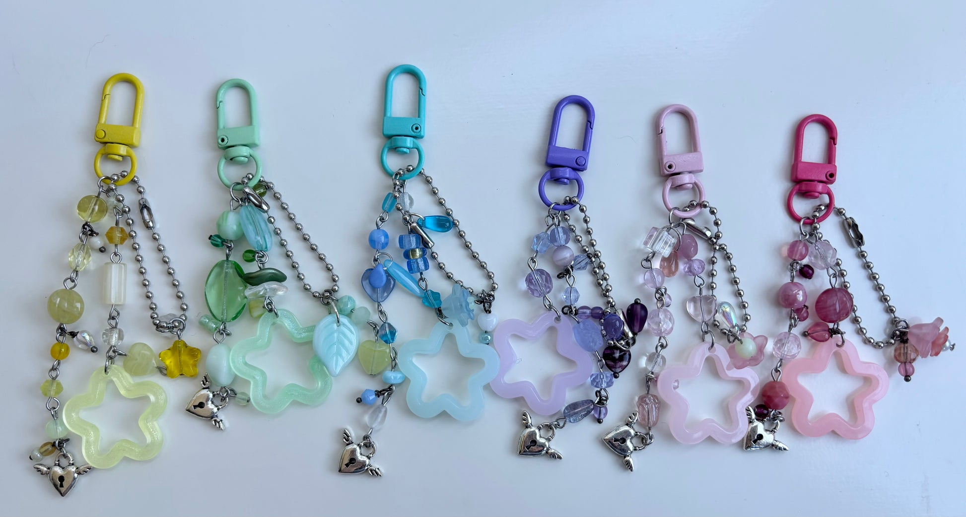 handmade keychains with glass beads, resin charms, and stainless steel findings. each one is unique!